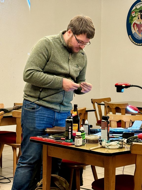 Am 20.03.2026 fand ab 19:00 Uhr der Waffenputzkurs mit Büchsenmachermeister Jonathan Bräuning im Schützenhaus Bartenbach statt.