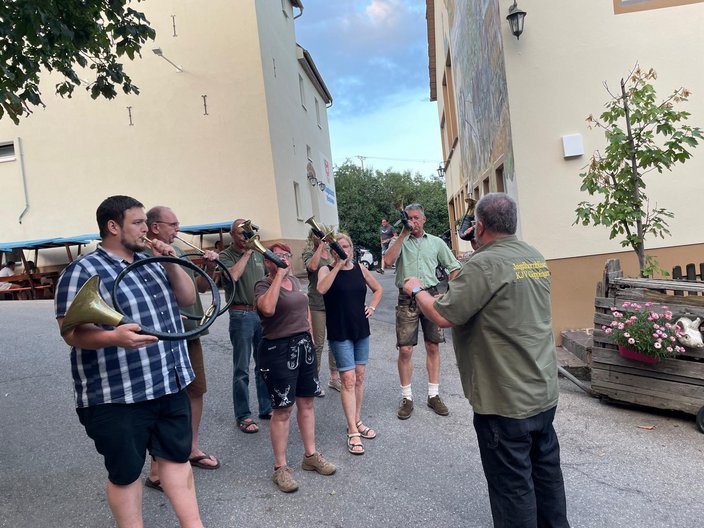 Mit einem auf Wiedersehen der Jagdhörner verabschiedeten wir uns von unserem Gastgeber Georg.
