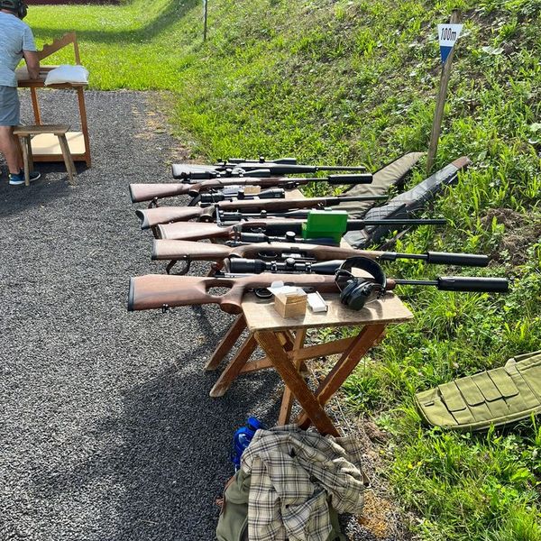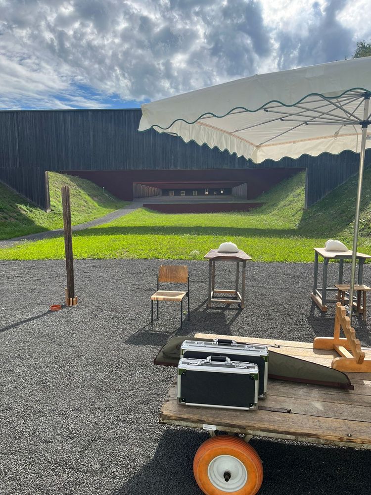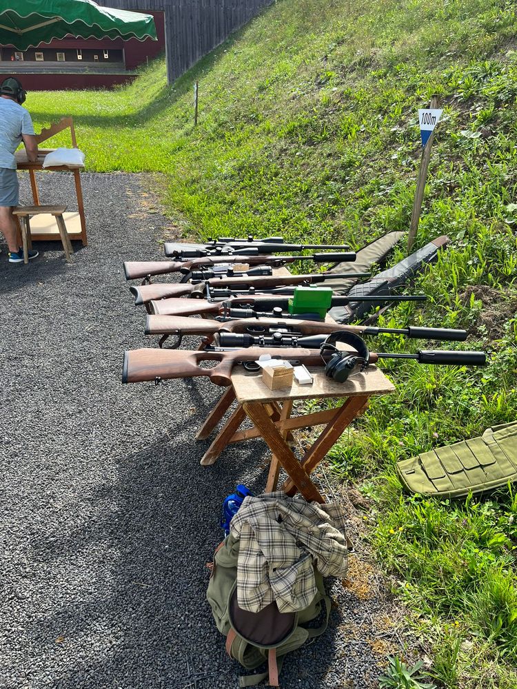 Eine Leihwaffe im Kaliber .222Rem ist vorhanden. Der Schießstand ist bis zu einer Mündungsenergie von 7000J zugelassen.
