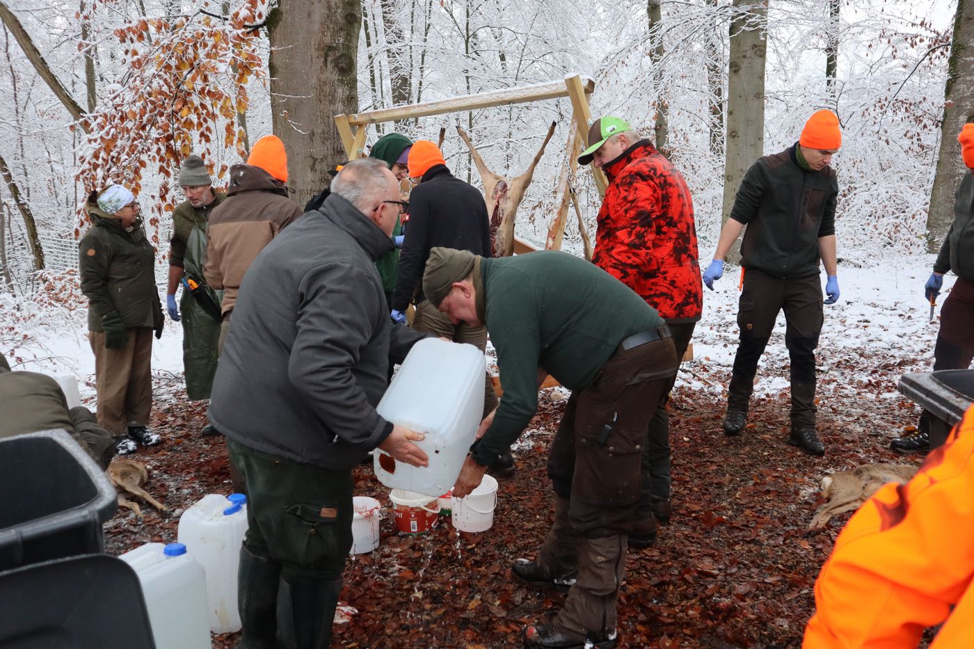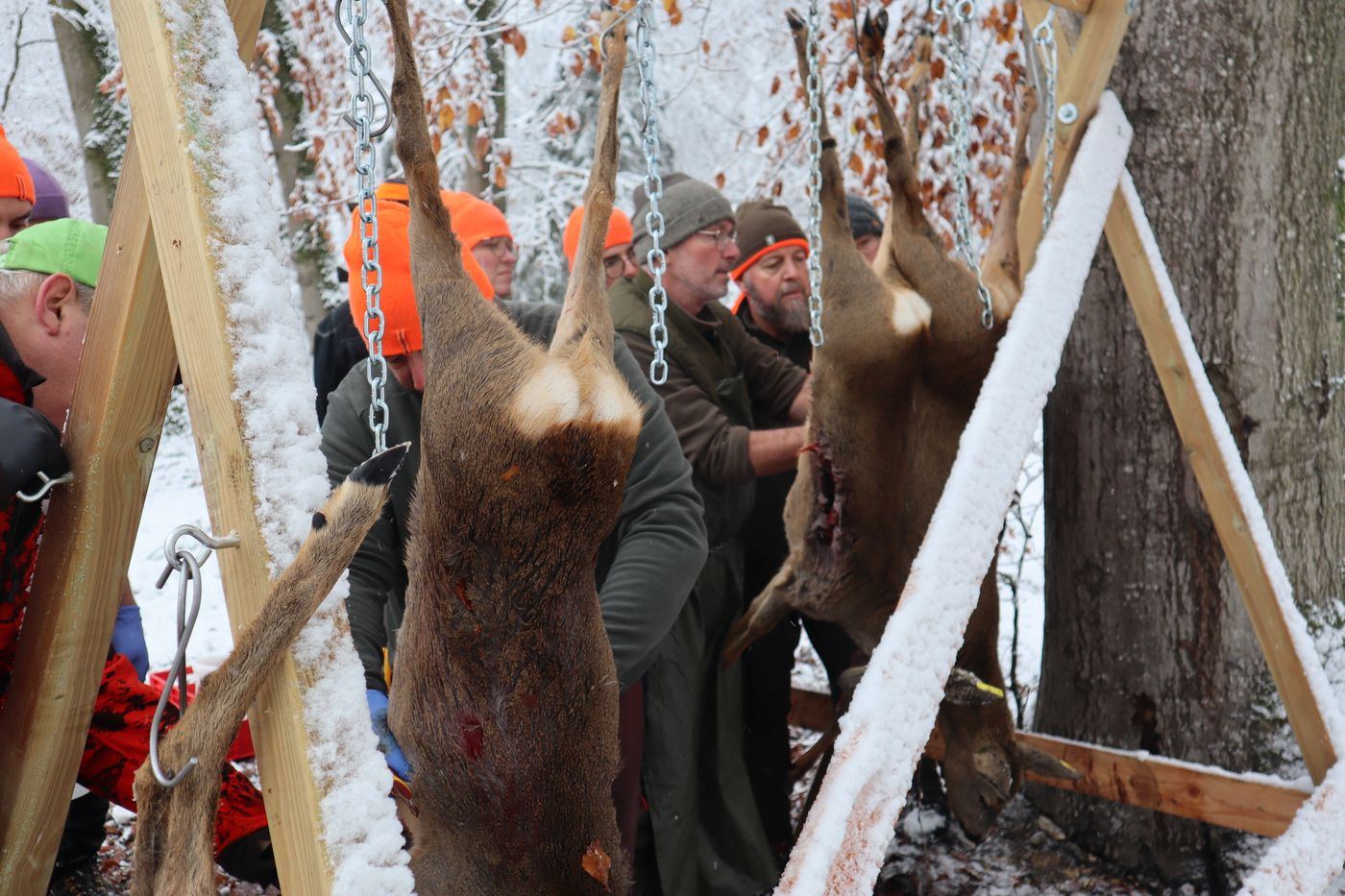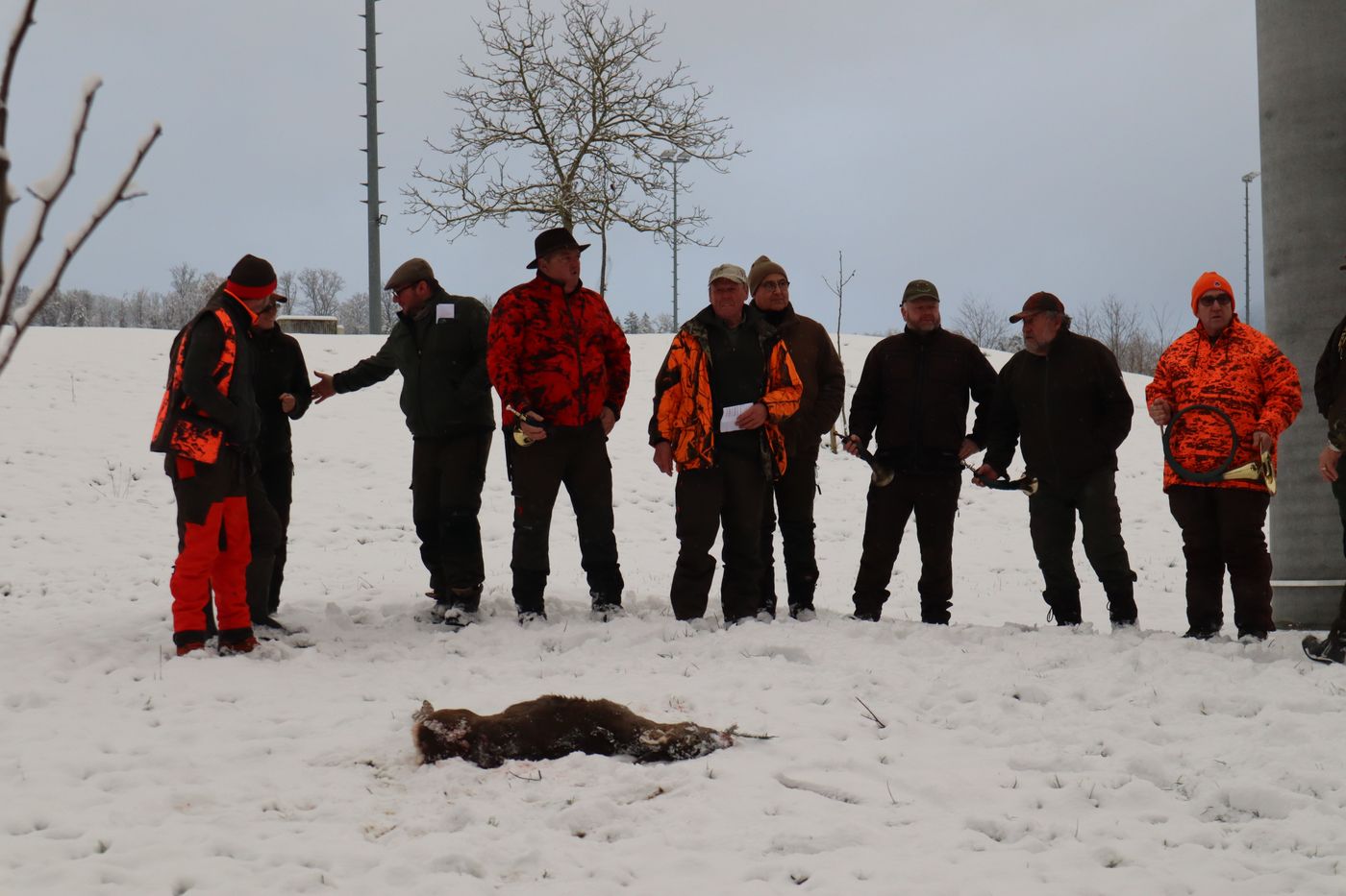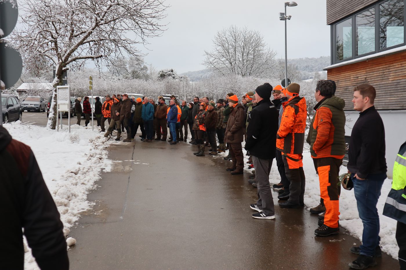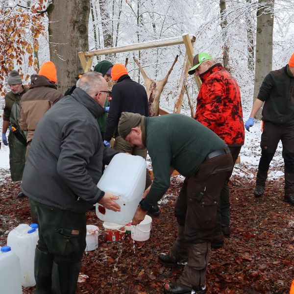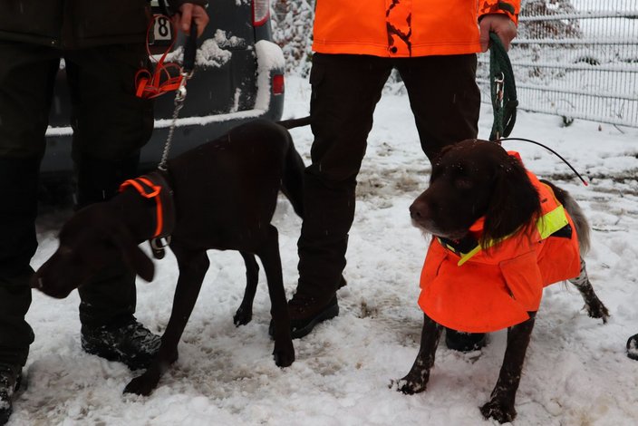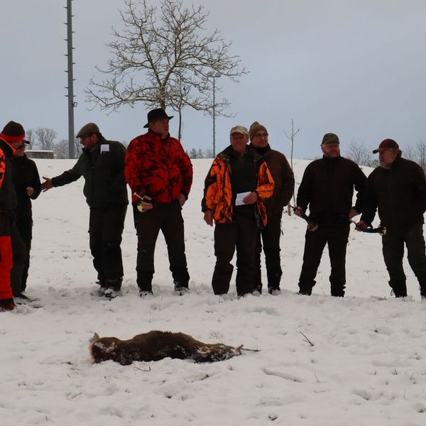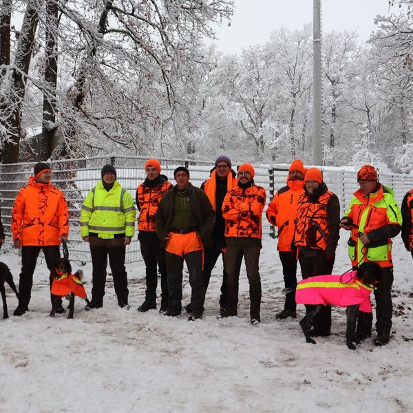 Nach einer Einweisung für die Jäger ging es auch schnell für die Treiber zur Sache. Teams wurden eingeteilt und Marschrichtungen für die einzelnen Treibertruppen festgelegt. Bei schönstem Winterwetter durften wir das Treiben durch das extrem weitläufige Waldgebiet begleiten. Wir bedanken uns bei den Revierpächtern für die Durchführung und die tolle Organisation. Es waren über 100 Beteiligte bei der Jagd zu koordinieren, was den erfahrenen Revierpächtern aber mühelos gelang.