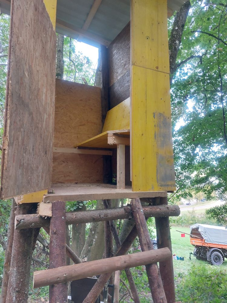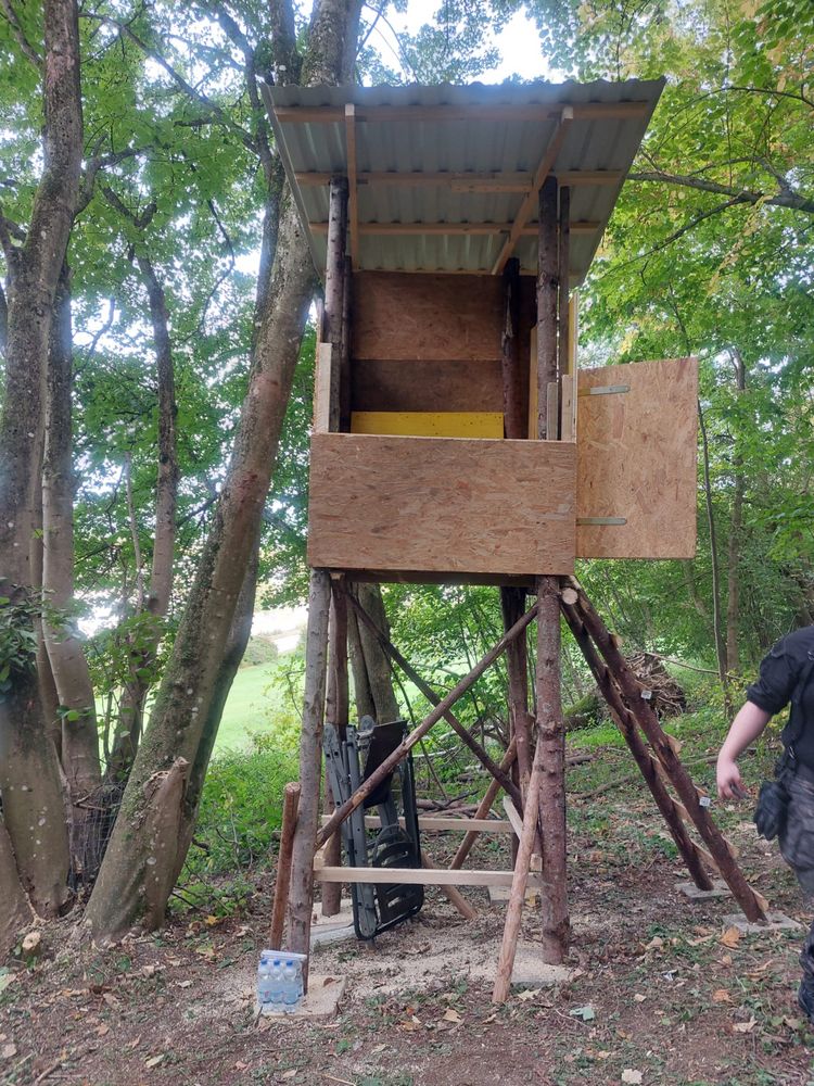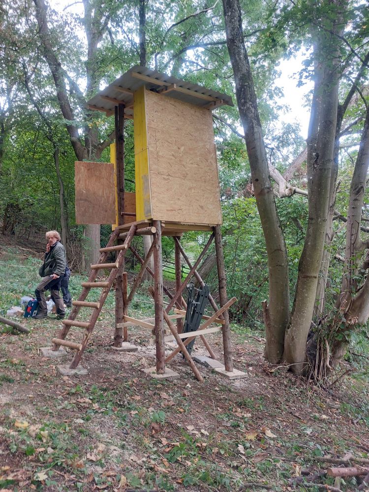 Neben der Ersetzung einer Ansitzleiter durch eine neue Kanzel, ist zudem der Behebung von Flurschäden nachgegangen worden. Auf einer Fläche von ca. 50 x 50 m wurde das betroffene Wiesenstück, nach Grabarbeiten von Schwarzwild, wieder hergerichtet.