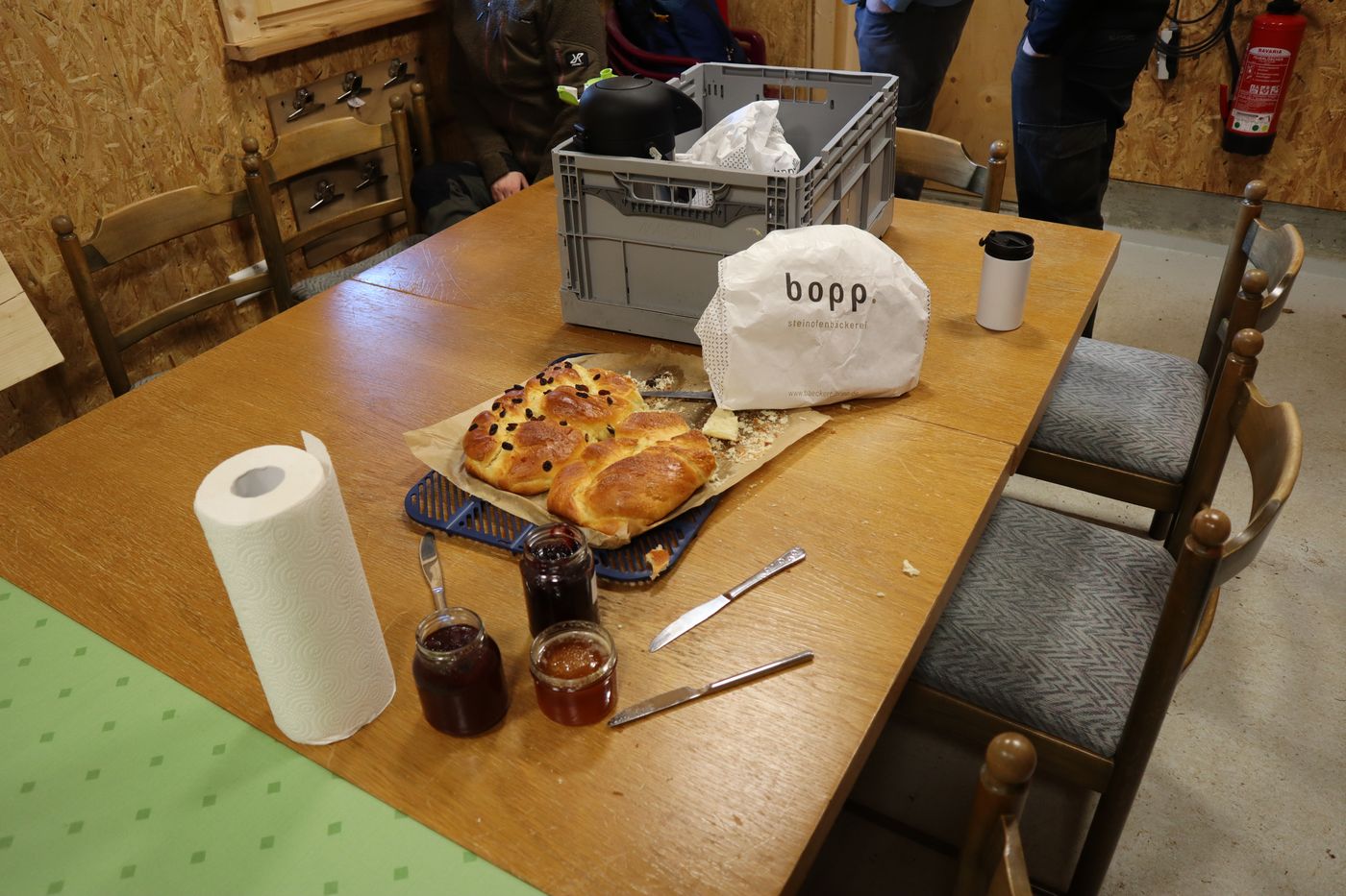 Die Bäckerei Bopp versorgte uns mit Kaffee und Brezeln. Hinzu gesellte sich noch ein doppelter Hefezopf mit div. Gsälz, Honig uvm. - ein herzlichen DANK an die Spender!